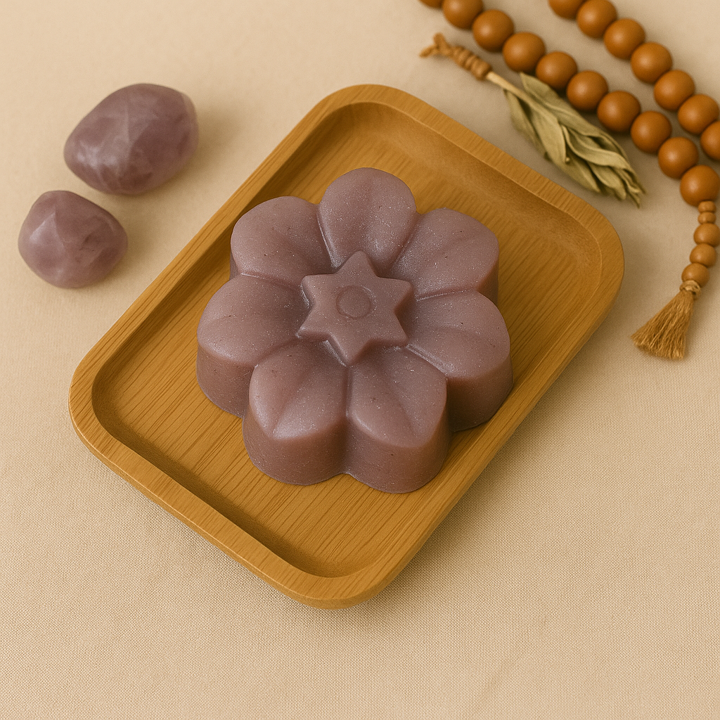 Elaborado con base vegetal de glicerina y aceite de jojoba. Enriquecido con aceites esenciales de lavanda, salvia y sándalo, que aportan un aroma floral-amaderado y profundamente calmante. Su espuma delicada limpia, purifica y armoniza la energía, dejando la piel suave y el espíritu en paz. Úsalo como un ritual de limpieza emocional y conexión con tu esencia más pura.